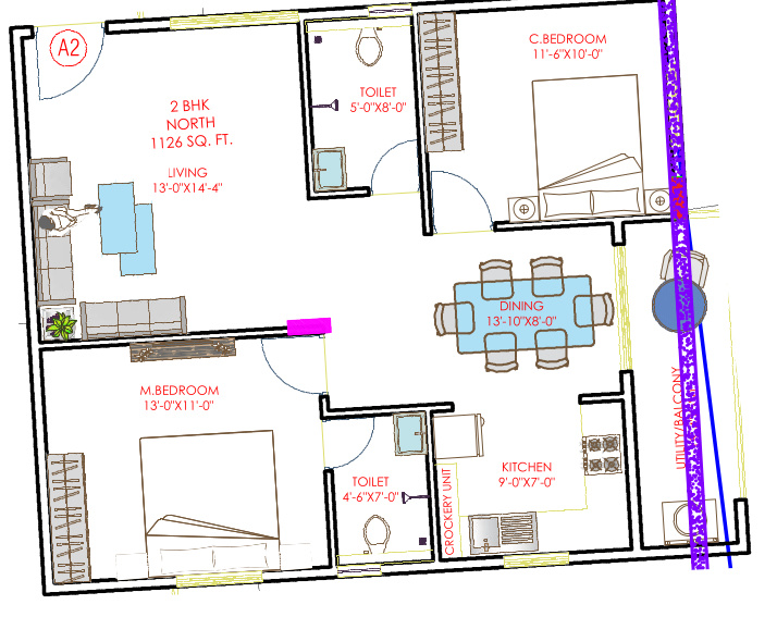 2BHK+2T (1,250 sq ft)