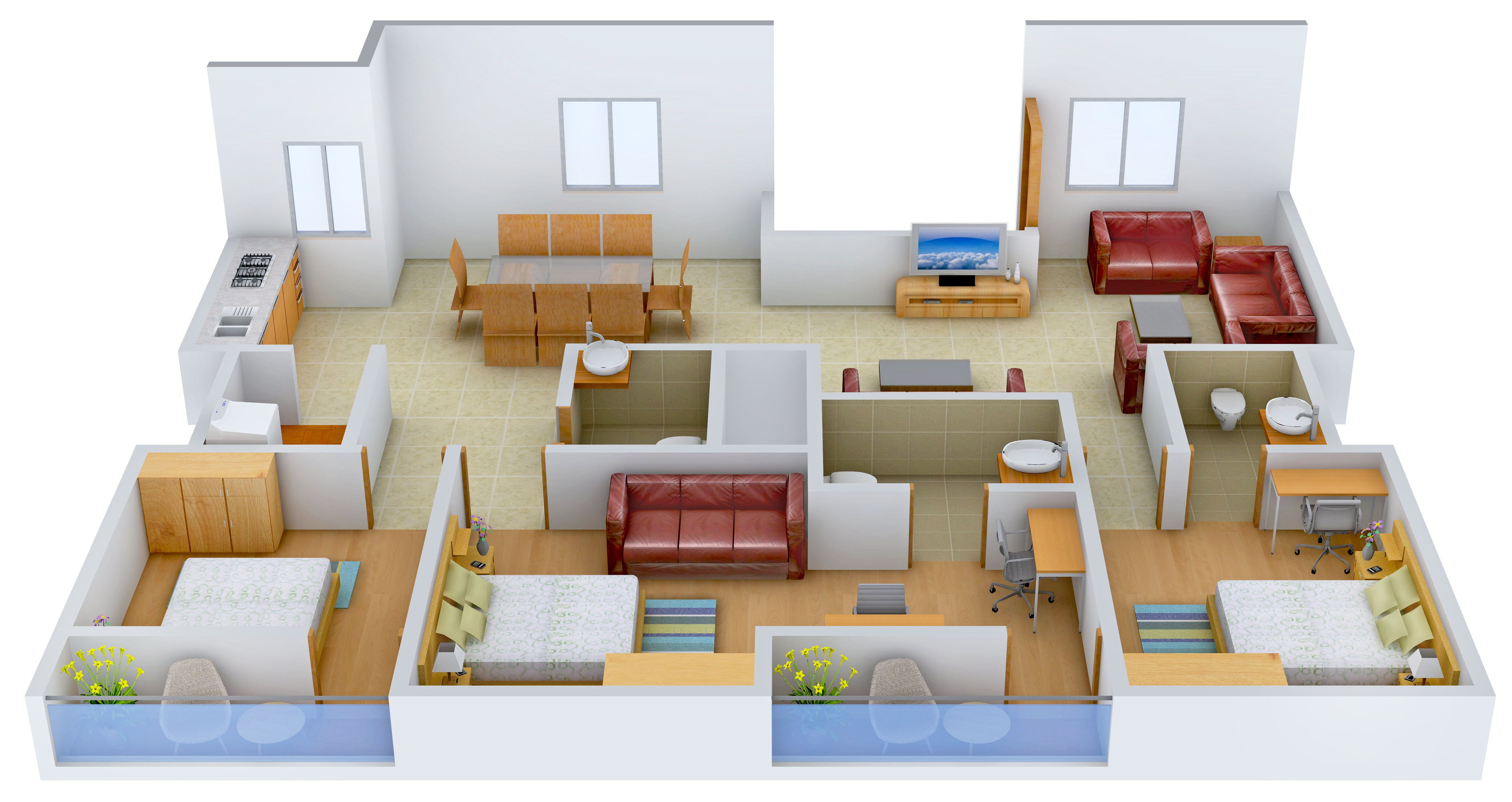 - 3 Bathrooms