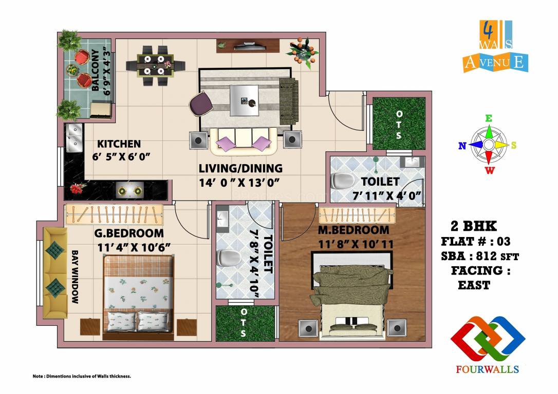 812 sq ft 2 BHK 2T Apartment in Fourwalls Infra Avenue