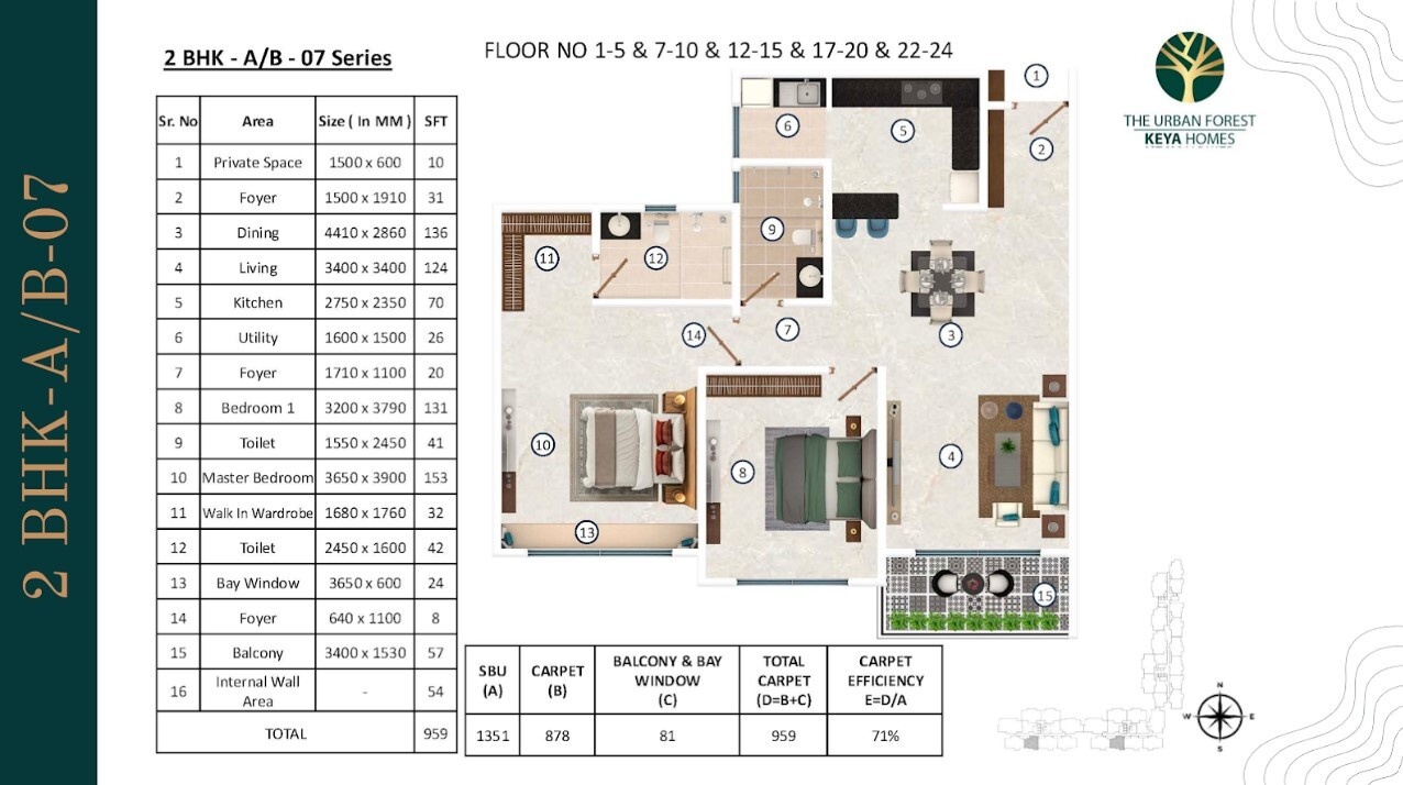 1351 sq ft 2 BHK 2T Apartment in Keya Homes The Urban Forestby Keya Homes