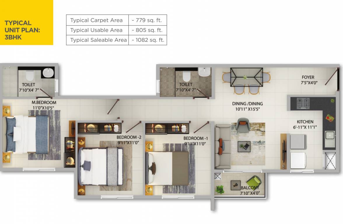 1082 sq ft 3 BHK 3T Apartment in Provident Housing Equinox 4