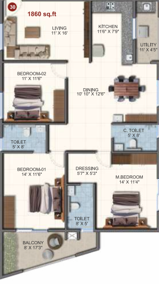 - 3 BHK 1860 sq ft₹ 2.01 Cr