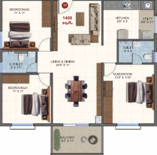 - 3 BHK 1400 sq ft₹ 1.51 Cr