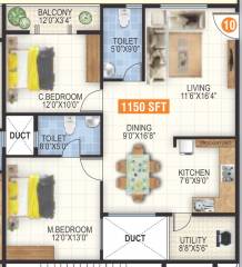 1150 sq ft 2 BHK 2T Apartment in Sri Garudapriya Builders Sunshine