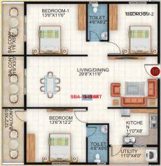 1643 sq ft 3 BHK 3T Apartment in SS Builders Bangalore Kanaka Paradise
