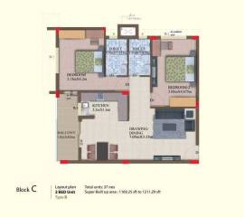 2BHK+2T (1,211 sq ft)