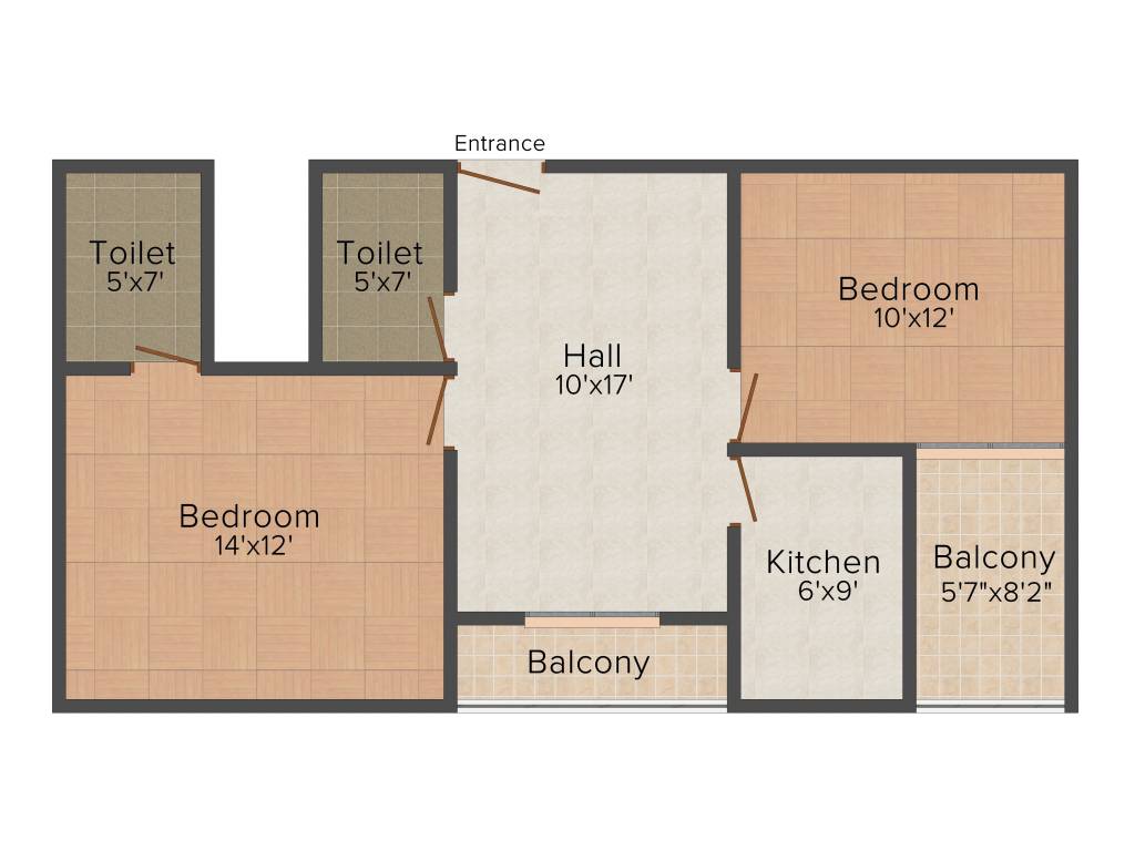 2BHK+2T (1,100 sq ft)