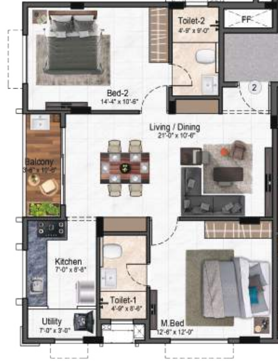 - 2 BHK 1150 sq ft₹ 91.69 L