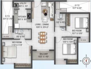 3BHK+3T (1,332 sq ft)