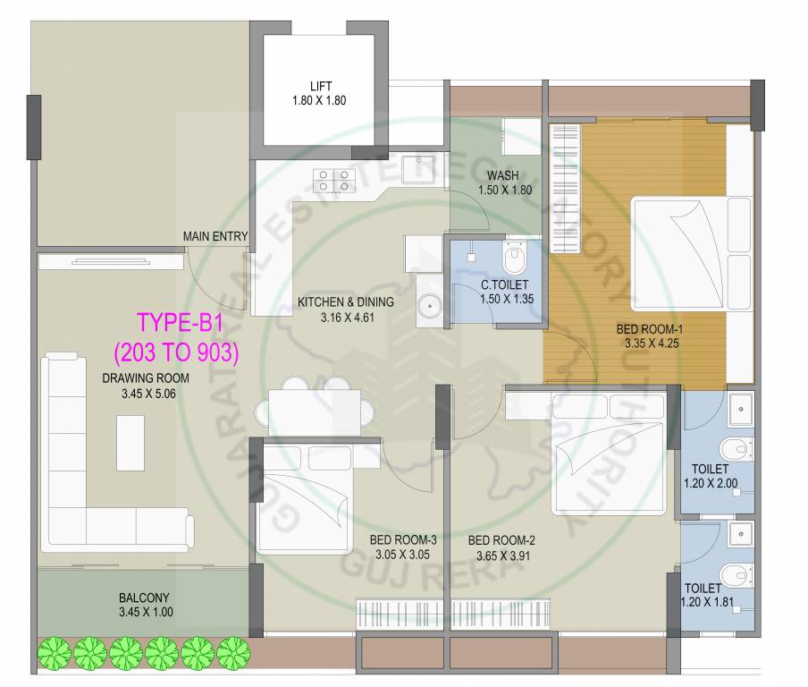 3BHK+3T (829.25 sq ft)