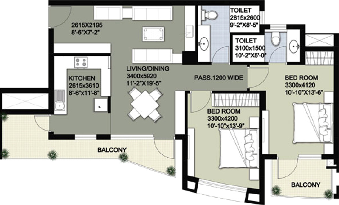 2BHK+2T (1,432 sq ft)