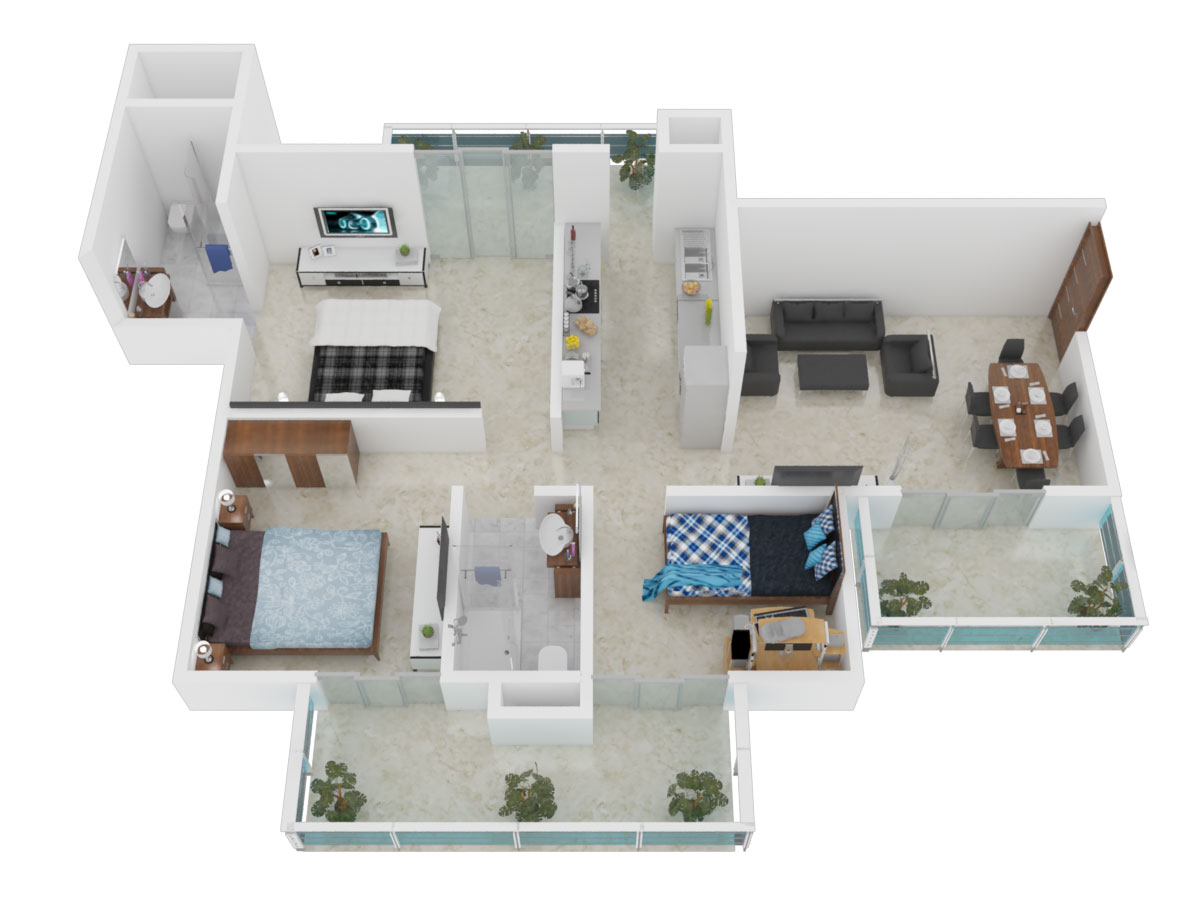 2BHK+2T (1,440 sq ft) + Study Room