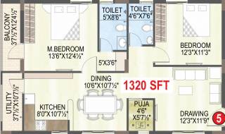 2BHK+2T (1,320 sq ft) + Pooja Room