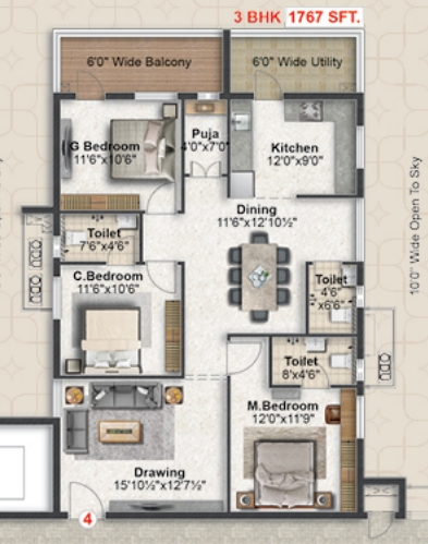 - 3 BHK 1767 sq ft₹ 1.17 Cr