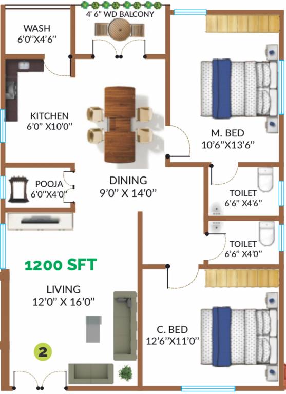 2BHK+2T (1,199.96 sq ft)