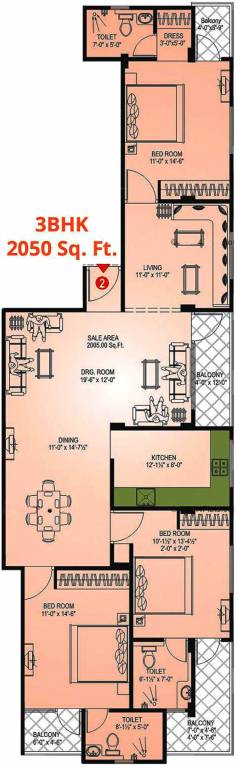 2050 sq ft 3 BHK 3T Apartment in Reputed DS Residency