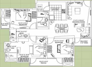 1439 sq ft 3 BHK 3T Apartment in Trimurty Colonizers Kohinoor Garden