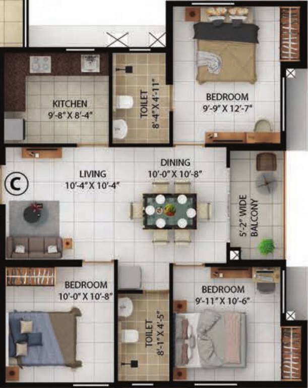 - 3 BHK 938 sq ft₹ 1.04 Cr