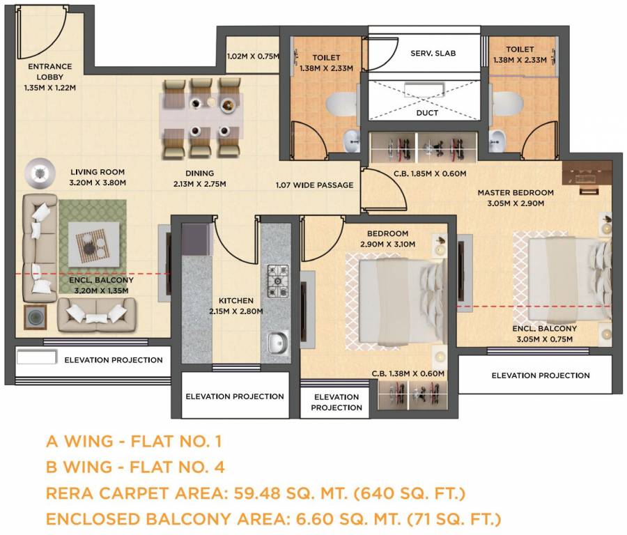 2BHK+2T (640.24 sq ft)