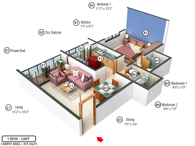 - PT ASSISTSumit 1BHK+1T (392.99 sq ft)by Sumit Woods Pvt LtdAvenue A5, Near Yazoo Park, Narangi Bypass Road, Global City, Virar WestPrice on request