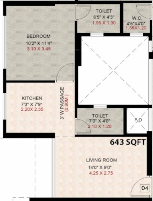 •  643 sqft