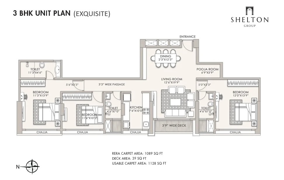 1089 sq ft 3 BHK 3T Apartment in Shelton Group Elite