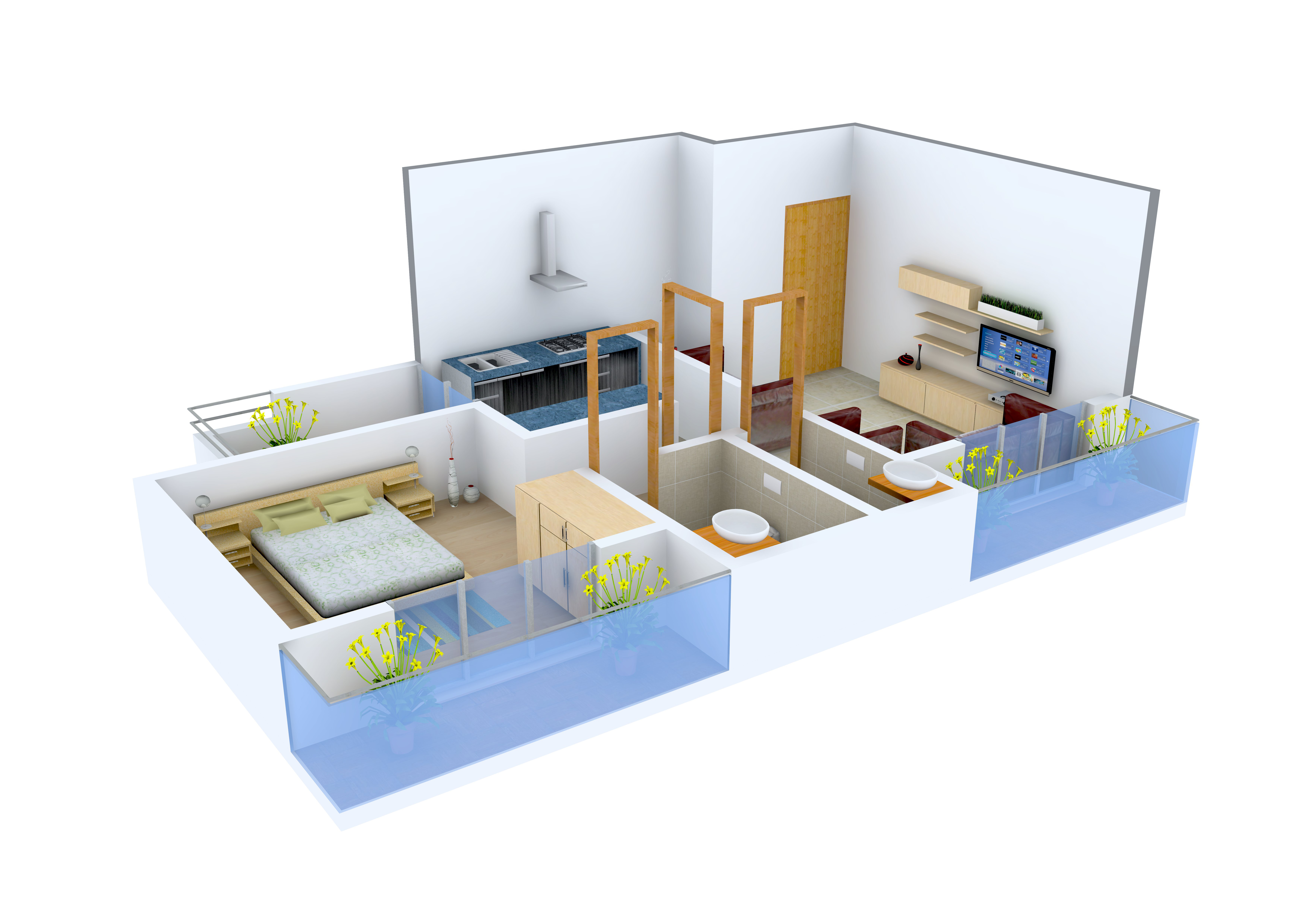 1BHK+1T (710 sq ft)