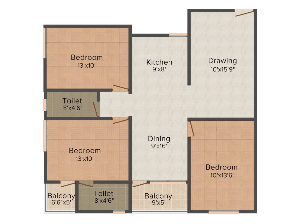 1315 sq ft 3 BHK 2T Apartment in Surya Nestbuild Digha Compound