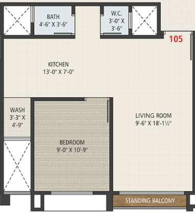 1BHK+1T (415 sq ft)