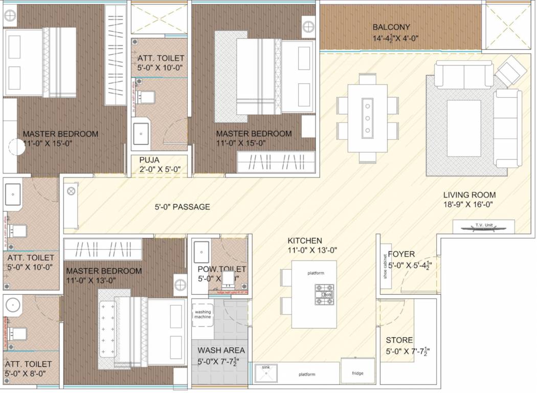 1323 sq ft 3 BHK 3T Apartment in Neptune Realty Group Greenwoods Aaranya