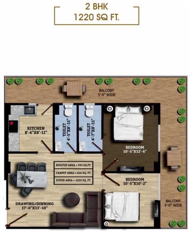 - 2 BHK 1220 sq ft₹ 66.98 L